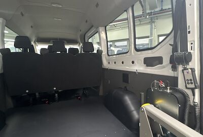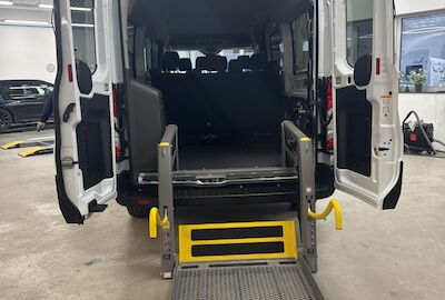 Für die Hahne Holding GmbH in Hannover realisierte Bayer Sonderfahrzeugbau den Umbau eines Ford Transit zu einem zuverlässigen Personen- und Rollstuhltransportfahrzeug für den täglichen Einsatz im Pflege- und Mobilitätsbereich.